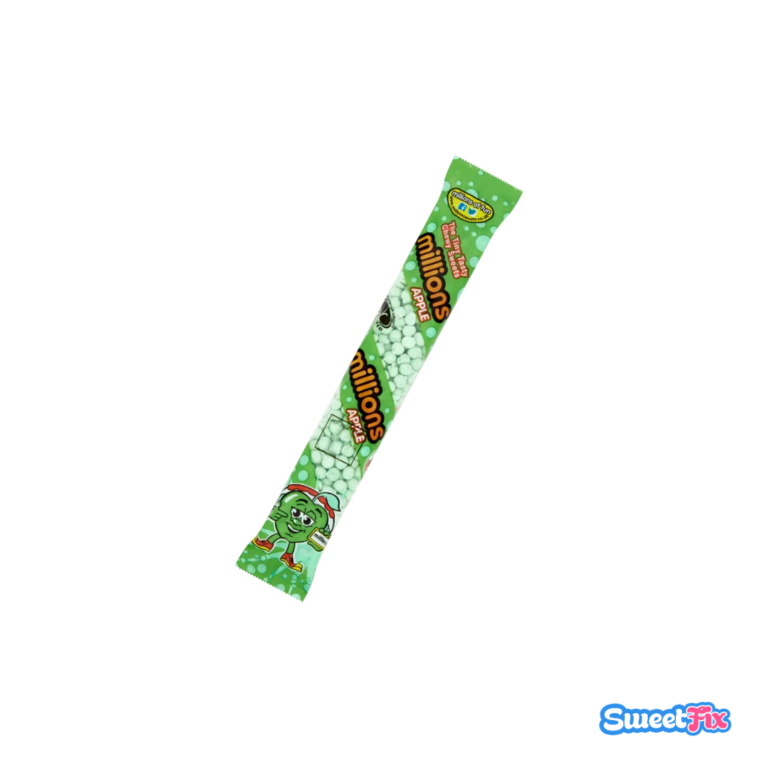 Enjoy a burst of fruity fun with Sweetfix Millions Tubes Apple. This 55g tube is packed with tiny, chewy candies bursting with delicious apple flavor. Perfect for any occasion, these vibrant treats will satisfy your sweet tooth and provide a delightful snacking experience. Enjoy the crisp apple taste and playful texture that make Millions Tubes a favorite among candy lovers!